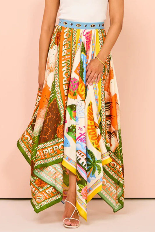 Casual Vintage Floral Asymmetrical High Waist Type A Patchwork Bottoms