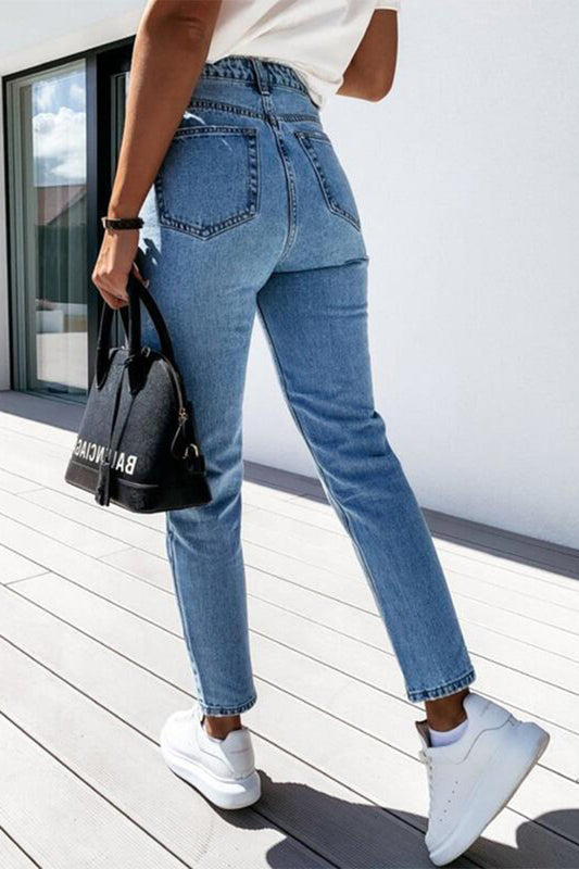 Casual Vintage Solid Ripped High Waist Regular Denim Jeans