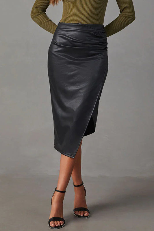 Sexy Solid Slit Fold Regular High Waist Type A Solid Color Bottoms