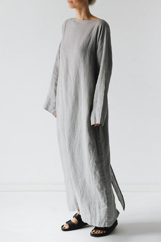 Casual Solid Backless Stringy Selvedge O Neck Long Sleeve Dresses