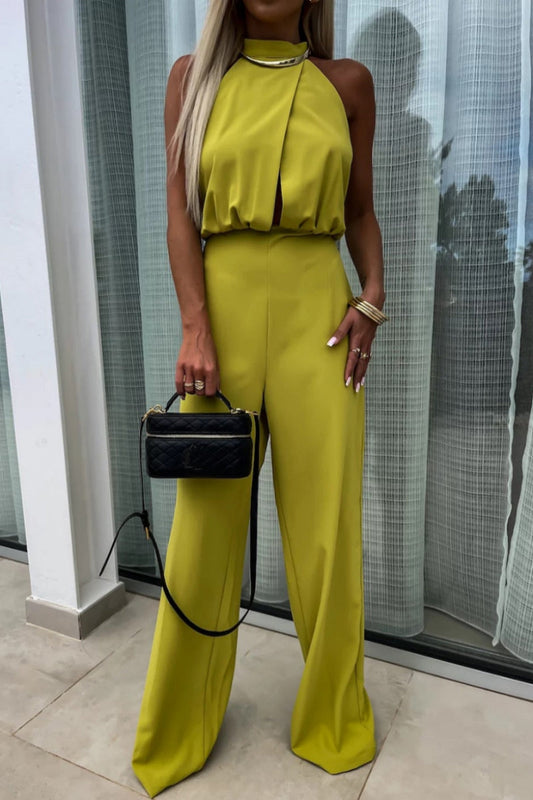 Fashion Casual Solid Patchwork Halter Loose Jumpsuits