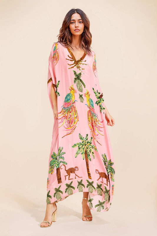 Unique Drop Shoulder Sleeve Coconut Tree Printed Dress