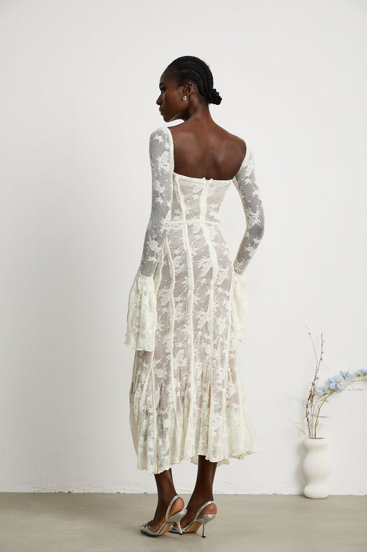 Marlene White Flared Lace Maxi Dress