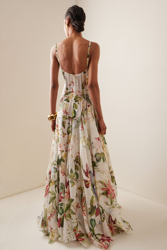 Floral Ruched Sweetheart Neck Maxi Dress