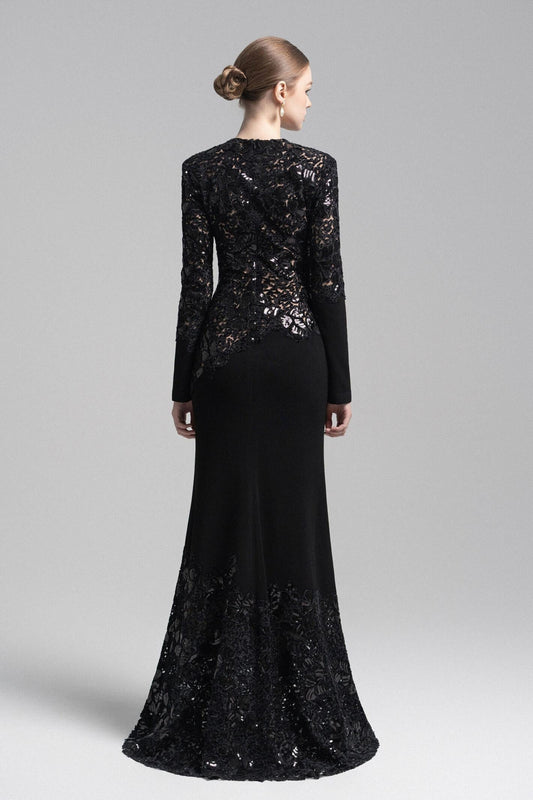 Sequin Splicing Embroidery Long Sleeve Maxi Dress