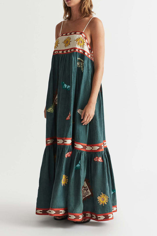 Casual Cartoon Print Patchwork Square Neck Sling Dresses