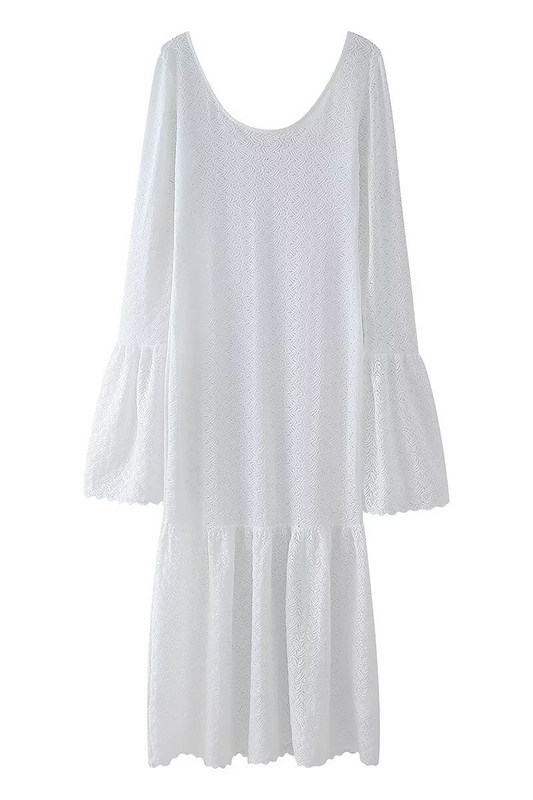 Sexy Solid Color Embroidered Hollow Out U Neck One Step Skirt Dresses