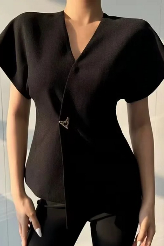 Casual Solid Color Metal Accessories Trim V Neck Tops