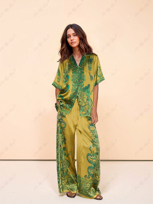 Unique Casual Print Loose Oversized Shirt Wide-Leg Pants Set