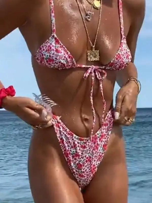 • Women's New Fashion Sexy Two Piece Printed String Bikini Set