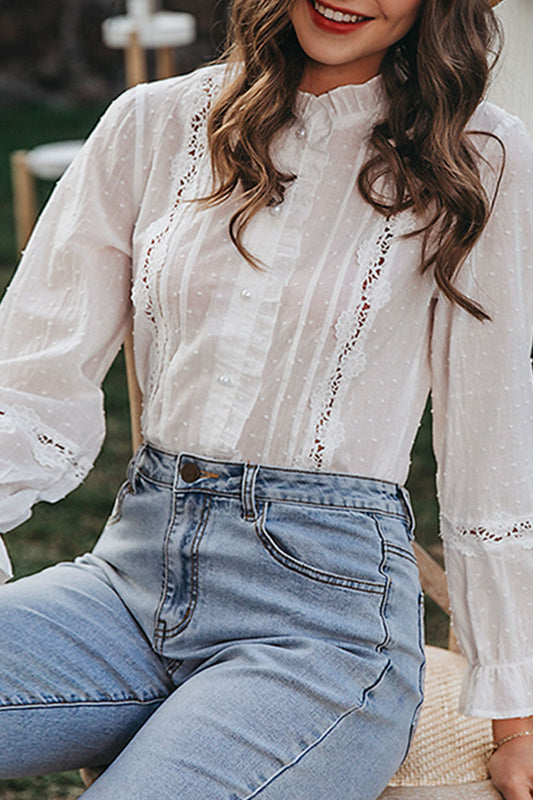 Fashion Street Solid Patchwork Mandarin Collar Blouses