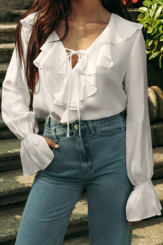 Elegant Striped Bandage Lotus Leaf Collar Tops