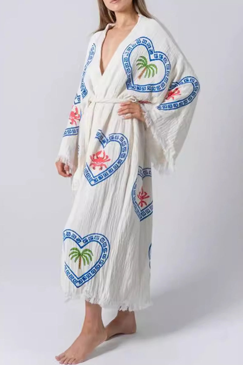 Casual Daily Love Print Lace Up V Neck Printed Dresses