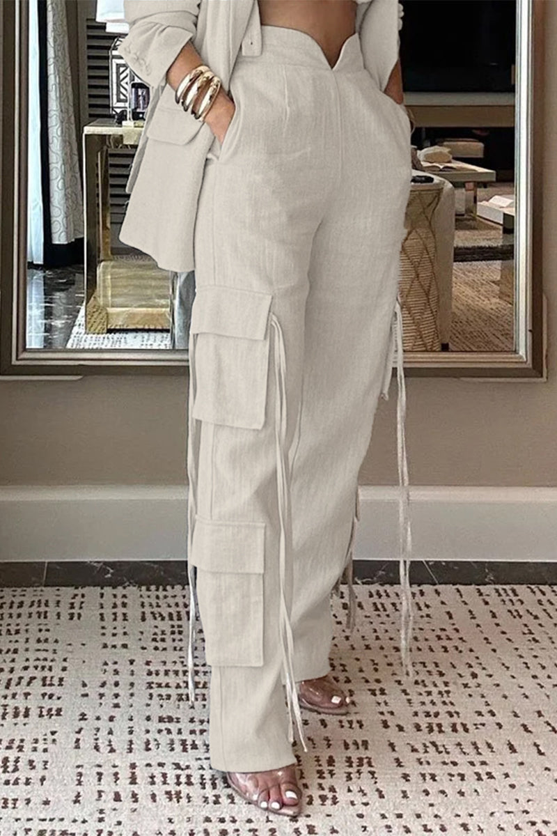 Casual Solid Pocket Turn-back Collar Long Sleeve Two Pieces