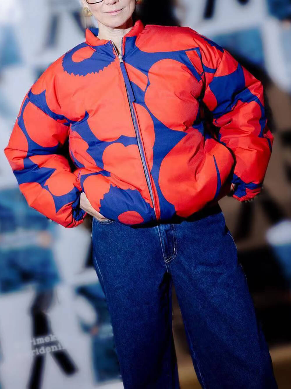 OverSize Style Stand Collar Bomber Jacket Printed Coat
