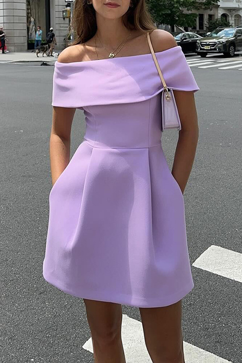 Sexy Solid Color Pocket Lace Up Off Shoulder A Line Dresses(3 Colors)