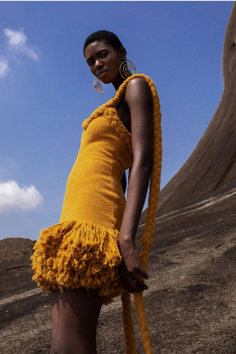 Vera Halter Tassel Mini Knit Dress